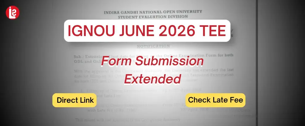 IGNOU June 2026 TEE Form Submission Extended Till 26 April: Direct Form Link, Late Fee